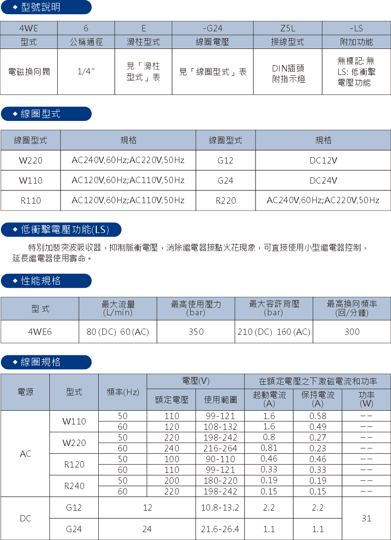 采用高性能电磁铁,可用于350bar高压力,80L/min大流量